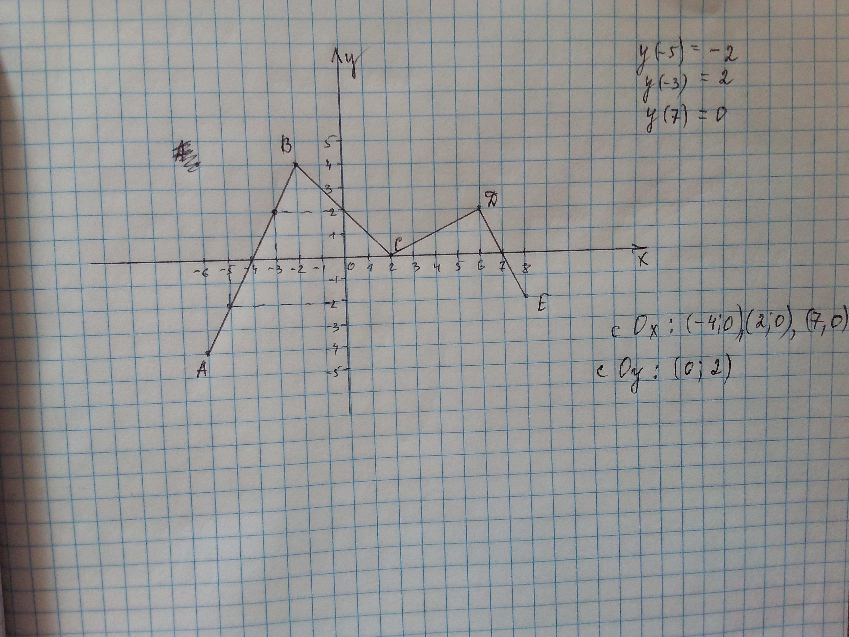 2) Найдите с помощью графика y(-5); y(-3); y(4); y(7).