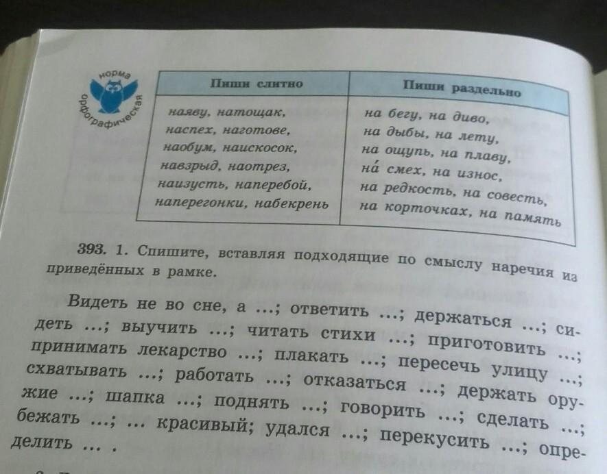 Видеть не во сне, а наяву,ответить наперебой,держаться на плаву,сидеть на корточках,выучить на память,читать стихи наизусть,приготовить наспех,принимать лекарство натощак,плакать навзрыд,пересечь улицу наобум,схватить на лету,работать на износ,отказаться наотрез,держать оружие наготове,шапка набекрень,поднять на дыбы,говорить наперебой,сделать на совесть,бежать наперегонки,на редкость красивый,удался на совесть,перекусить на бегу,определить на ощупь.