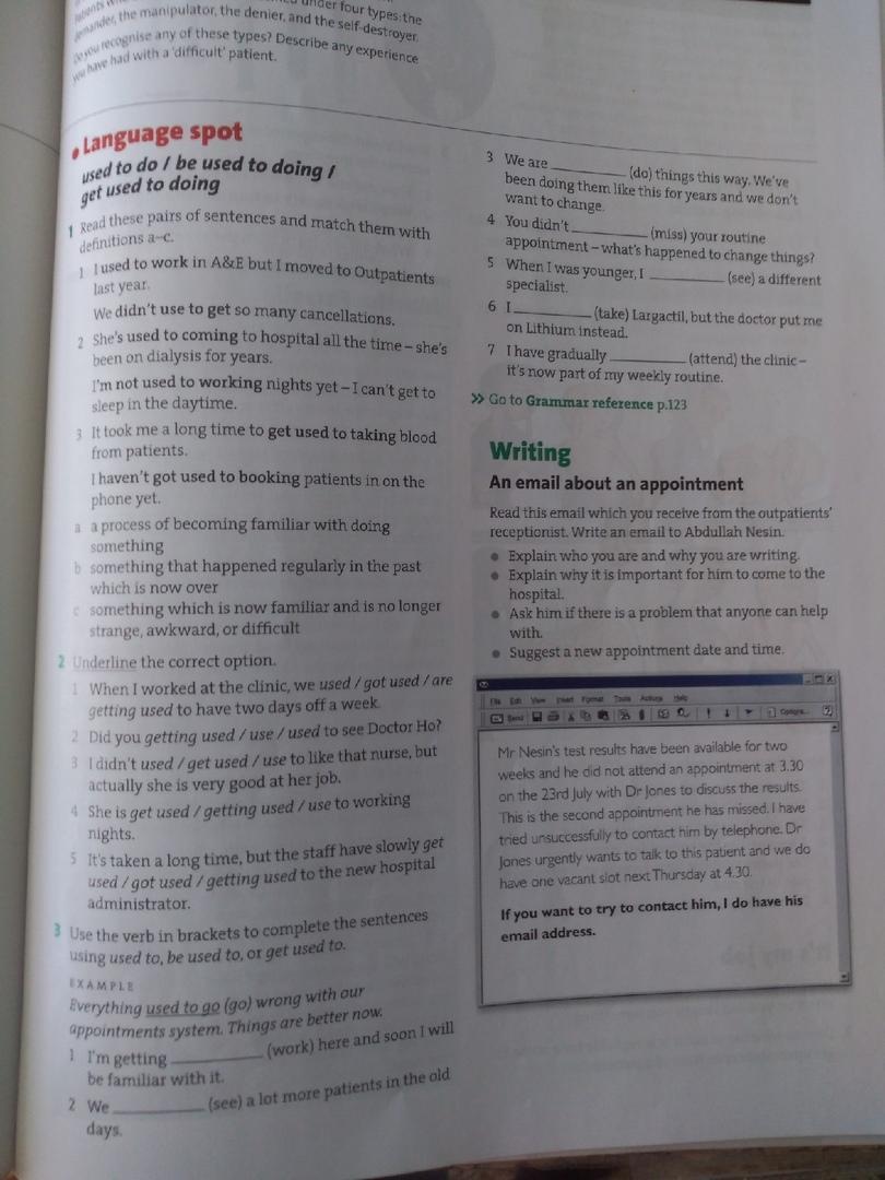 1. used to working 2. used to see 3. used to doing 4. use to miss 5. used to see 6. gut used to taking 7. used to attending