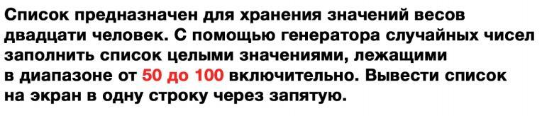 array=[r.randint(50,100) for i in range(N)] #генерация чисел