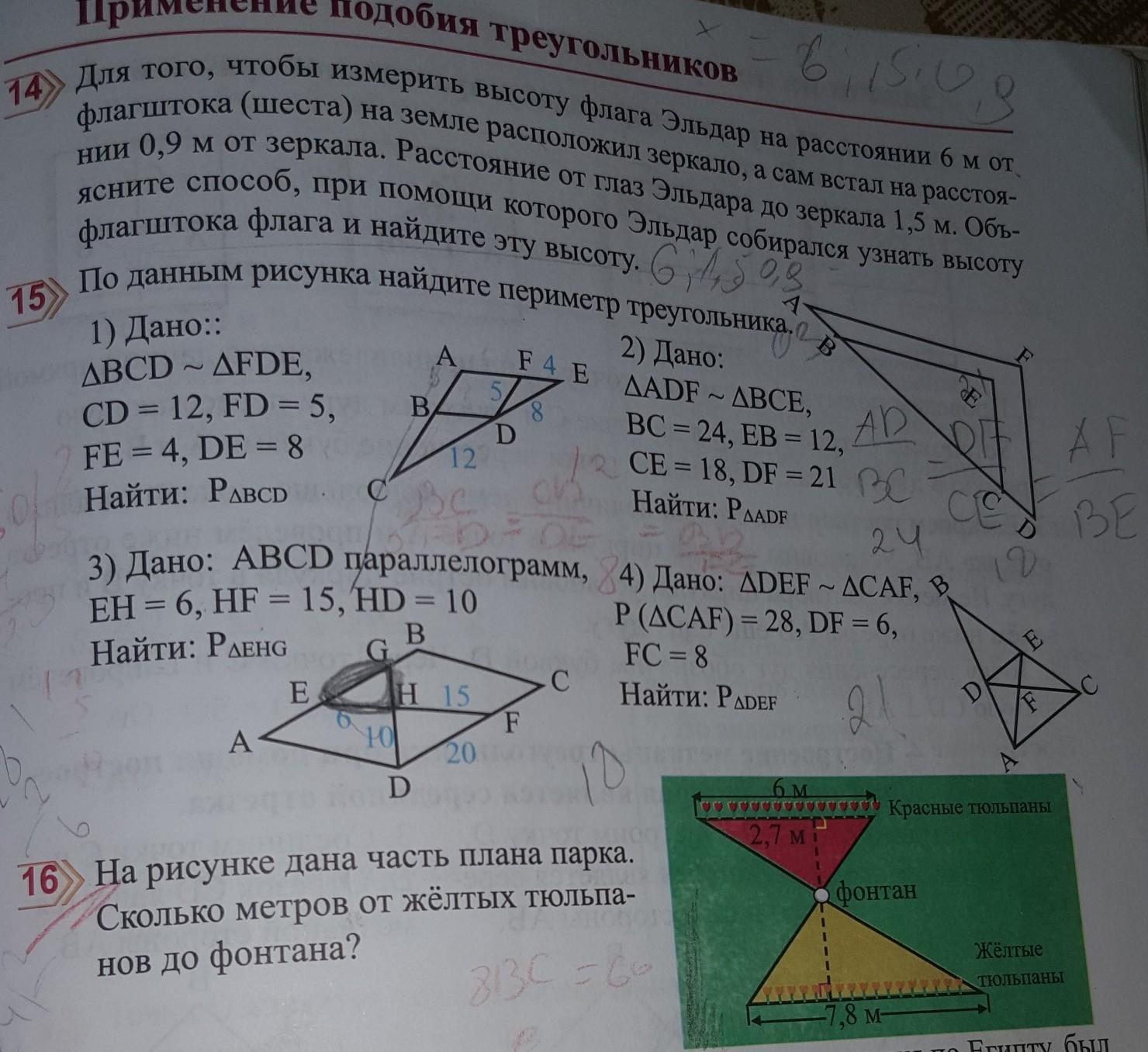 предположим что 2,7 м это расстояние от красных тюльпанов до фонтана