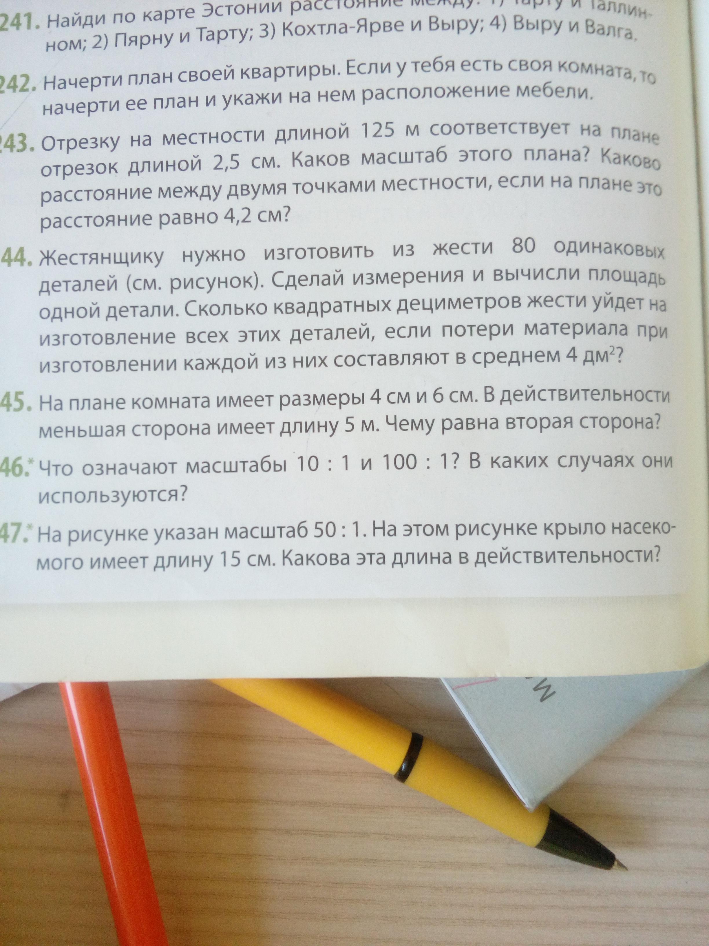 Если 4см в мастшабе превращается в 5м, то мастшаб у нас выходит 500:4 или 1:125. 6см умножаем на 125 и получаем 750см или 7.5м