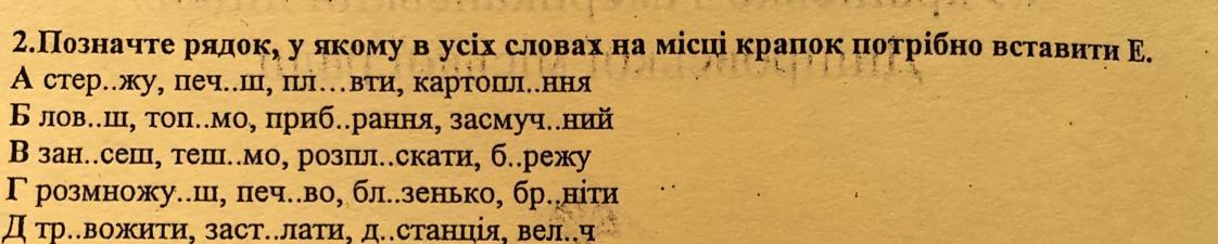Всі букви е ставляться під літерою В відповідь В