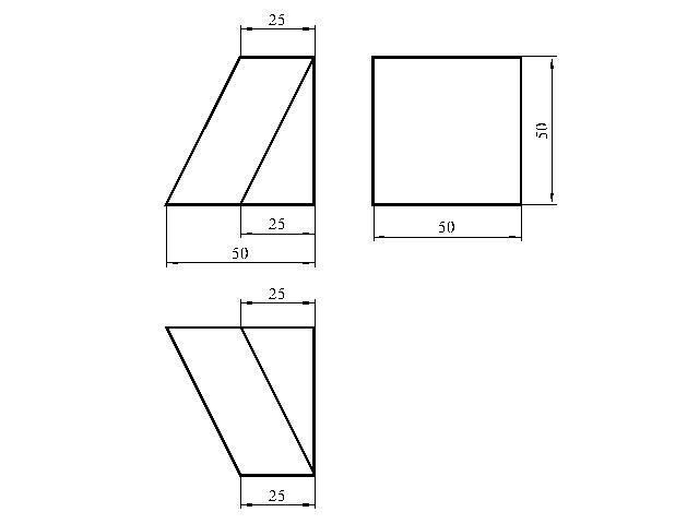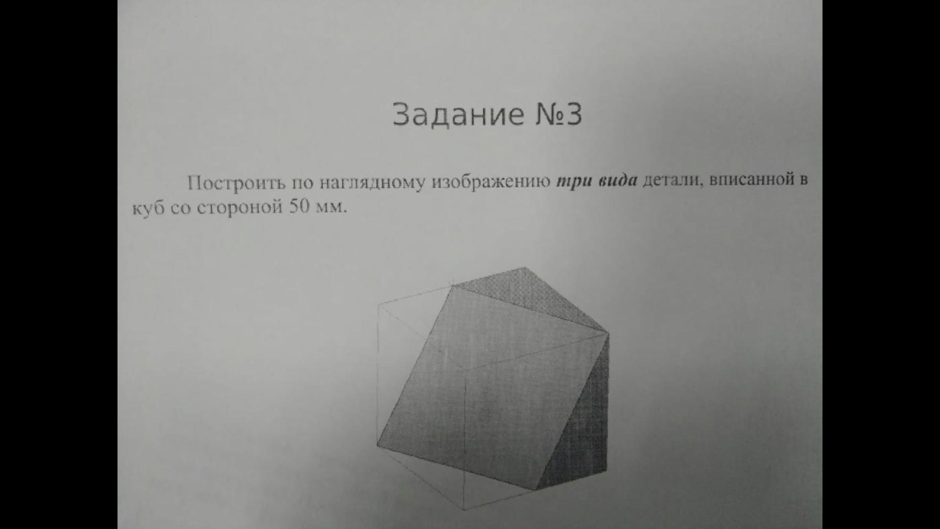Помогите,пожалуйста!!! Построить по наглядному изображению три вида детали вписанной в куб со стороной 50 см