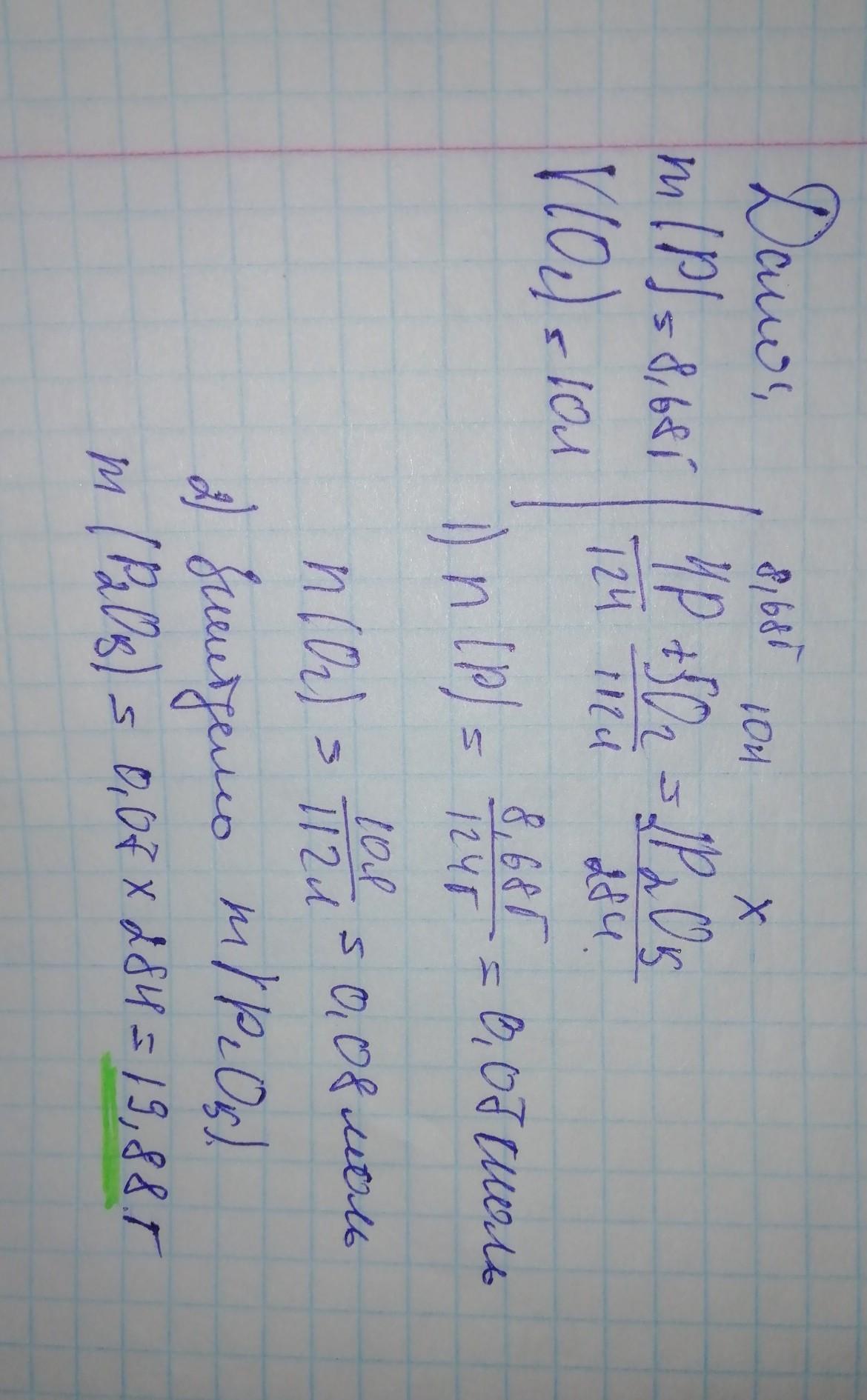 n(P):n(O2) = 0,28:0,4464 = 1:1,6 = 4:6,4, то есть кислород взят в избытке, из УХР видно также, что n(P2O5)= 0,5n(P)