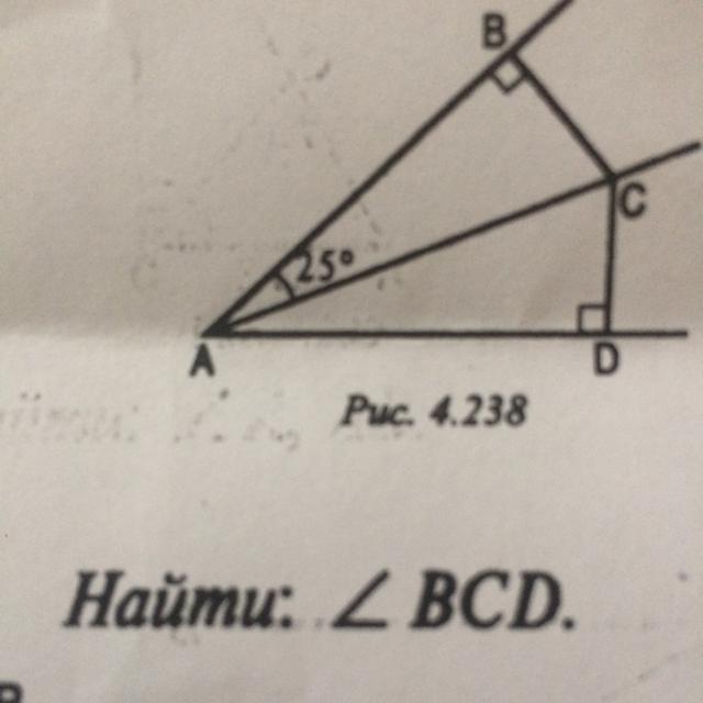 На рисунке изображены два треугольника и оба они равны и являются прямоугольными. ΔABC: ∠ACB=180°-90°-25°=65°. ∠C=2∠ACB=2*65=130°.