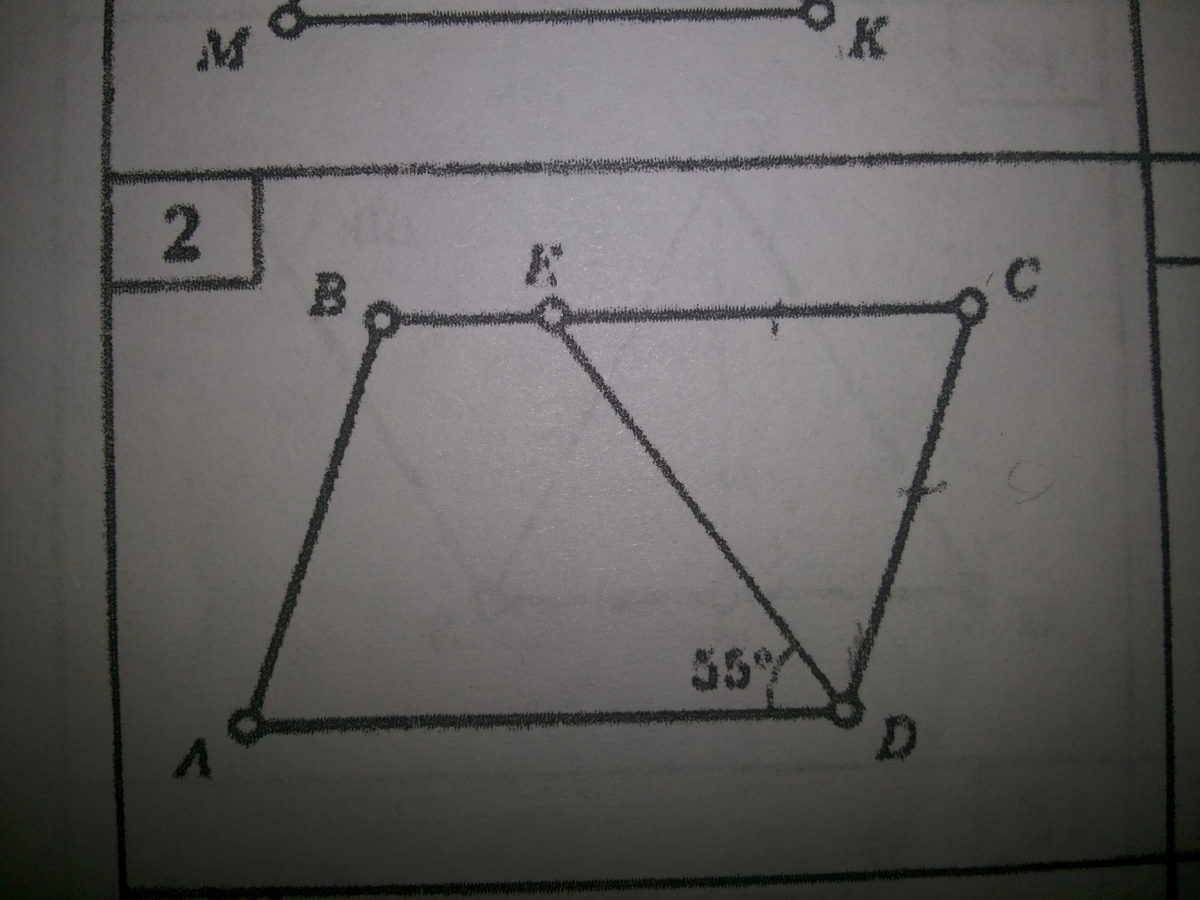 угол СКД =АДК=55 как накрест лежащие при параллельных ВС и Ад и секущей КД