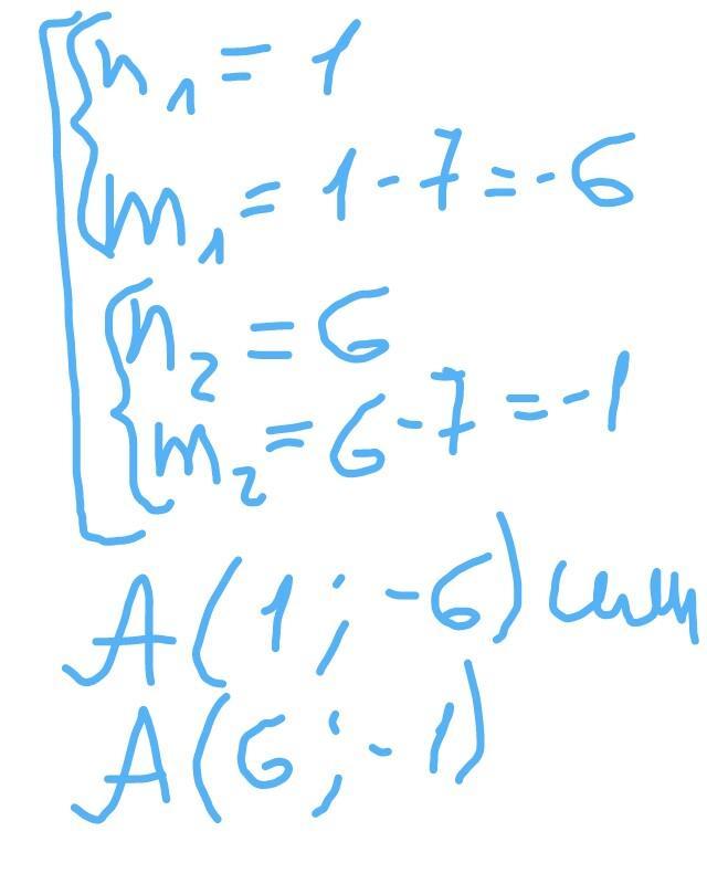 Известно, что точка A(m;n) принадлежит графику функции y= -6/x. Найдите координаты точки A, если m=n-7