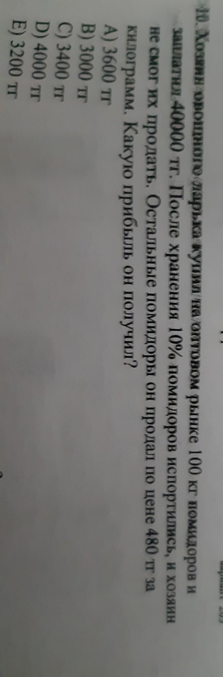 так как осталось 90%, то это 90 кг. 90кг * 480тнг=43200, потом отнимаем 40000 тнг. Остается прибыль в 3200 тнг