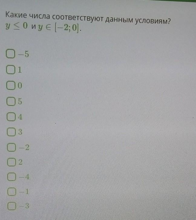 У тебя же условие что у меньше или равно 0, значит все что меньше 0 подходит, и он сам, а второе условие это промежуток)