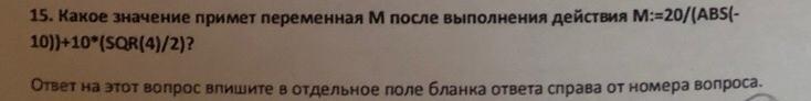 Ответ: переменная M примет значение 82.
