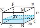 Емкость для воды имеет форму прямоугольного параллелепипеда с размерами 15х20х25 .Уровень воды в емкости на рисунке равен h1 .Если емкость перевернуть на грань BCEM ,то уровень воды будет на высоте h2 ,а если перевернуть на грань ABMN ,то уровень воды будет на высоте h3 .Определите сколько куб.метров воды в емкости ,если h1+h2+h3=24 см .