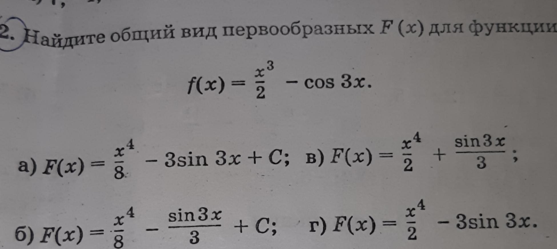 F(x) = x^4 / 2*4 - (sin3x)/3 + C = x^4/8 - (sin3x)/3 + C, вариант б)