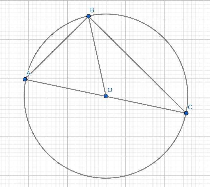 Дан прямоугольный ΔABC с прямым углом B. BO - медиана, проведенная из вершины прямого угла. Опишем около ΔABC окружность. Тогда гипотенуза AC будет являться диаметром окружности, так как вписанный угол ABC является прямым, то он опирается на диаметр окружности.