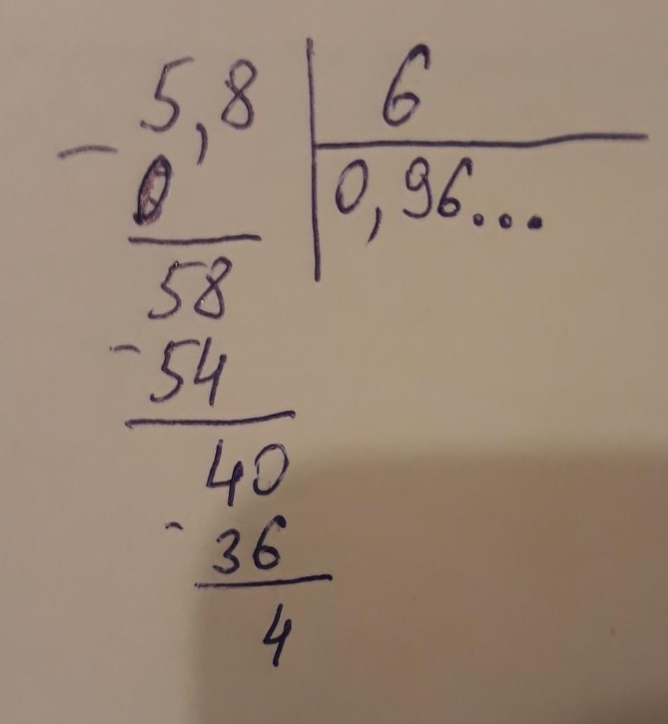 0,9 остаток 4 или 0,9(6) шесть в периоде