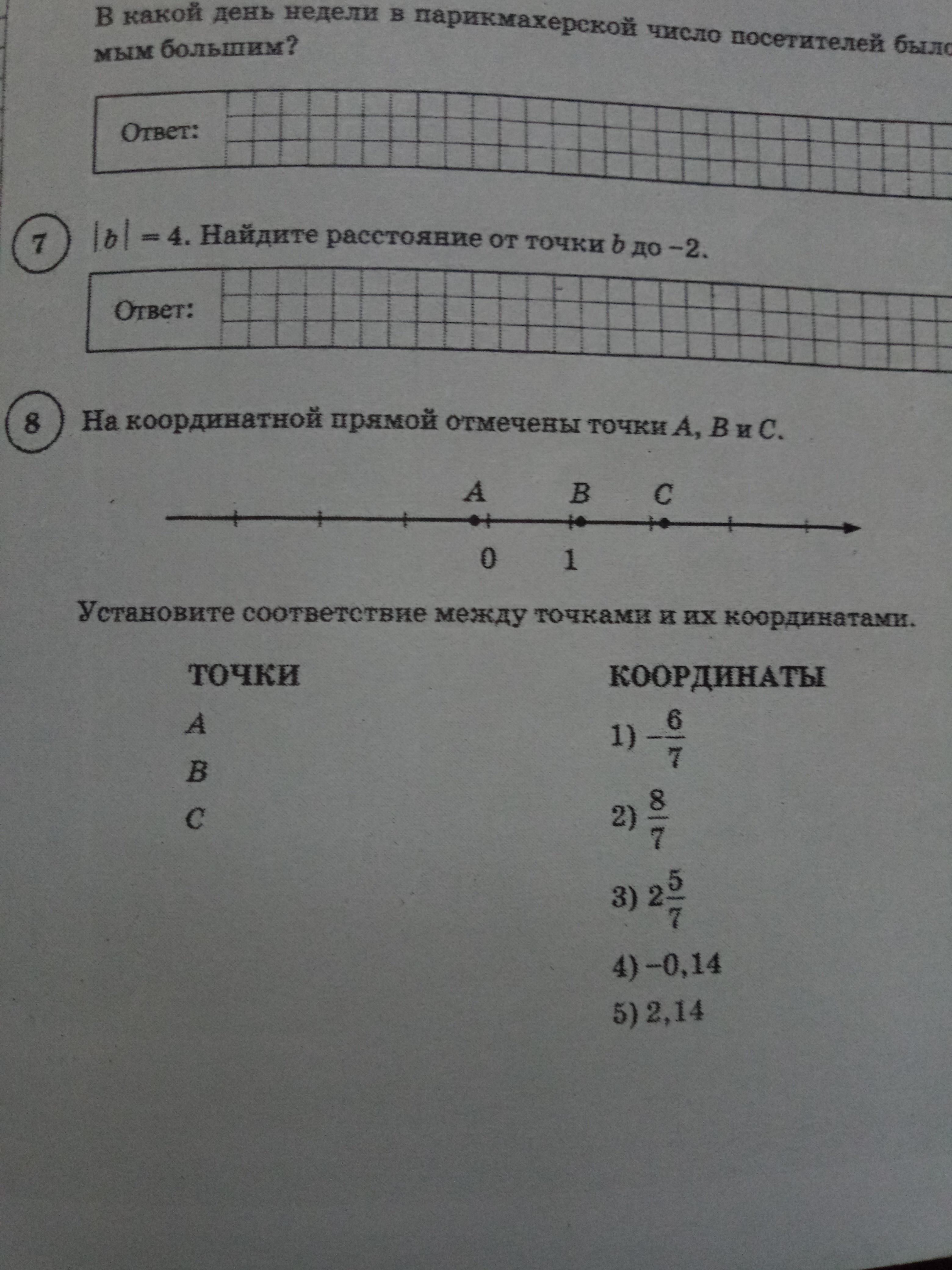 7)От b(4) до -2 расстояние равно 6, т.к от 4 до 0- 4 единицы и от 0 до -2 - 2 единицы. Значит 2+4=6 ед.
