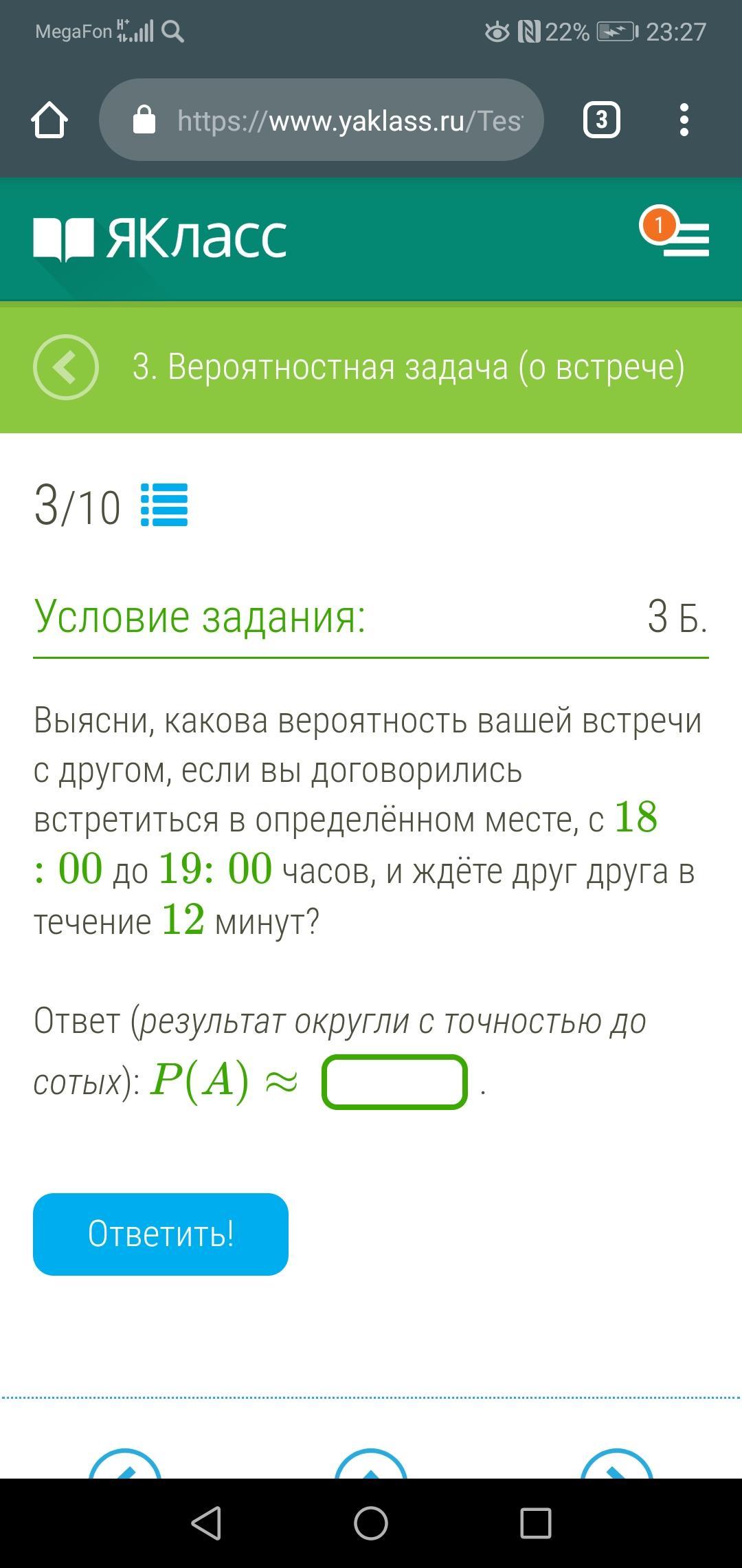 За 60 минут у вас есть 100 процентная вероятность встретиться