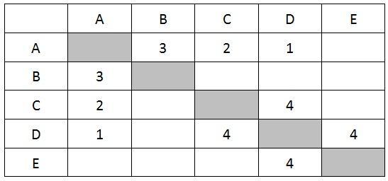 В таблице приведена стоимость перевозок между соседними железнодорожными станциями. Укажите схему, соответствующую таблице.