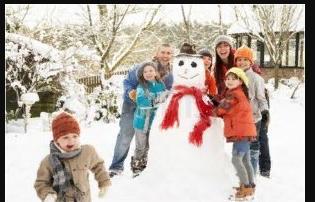 Зима. На улице прекрасная погода, дети и взрослые играют на улице с детьми лепят снеговиков погода прекрасна.