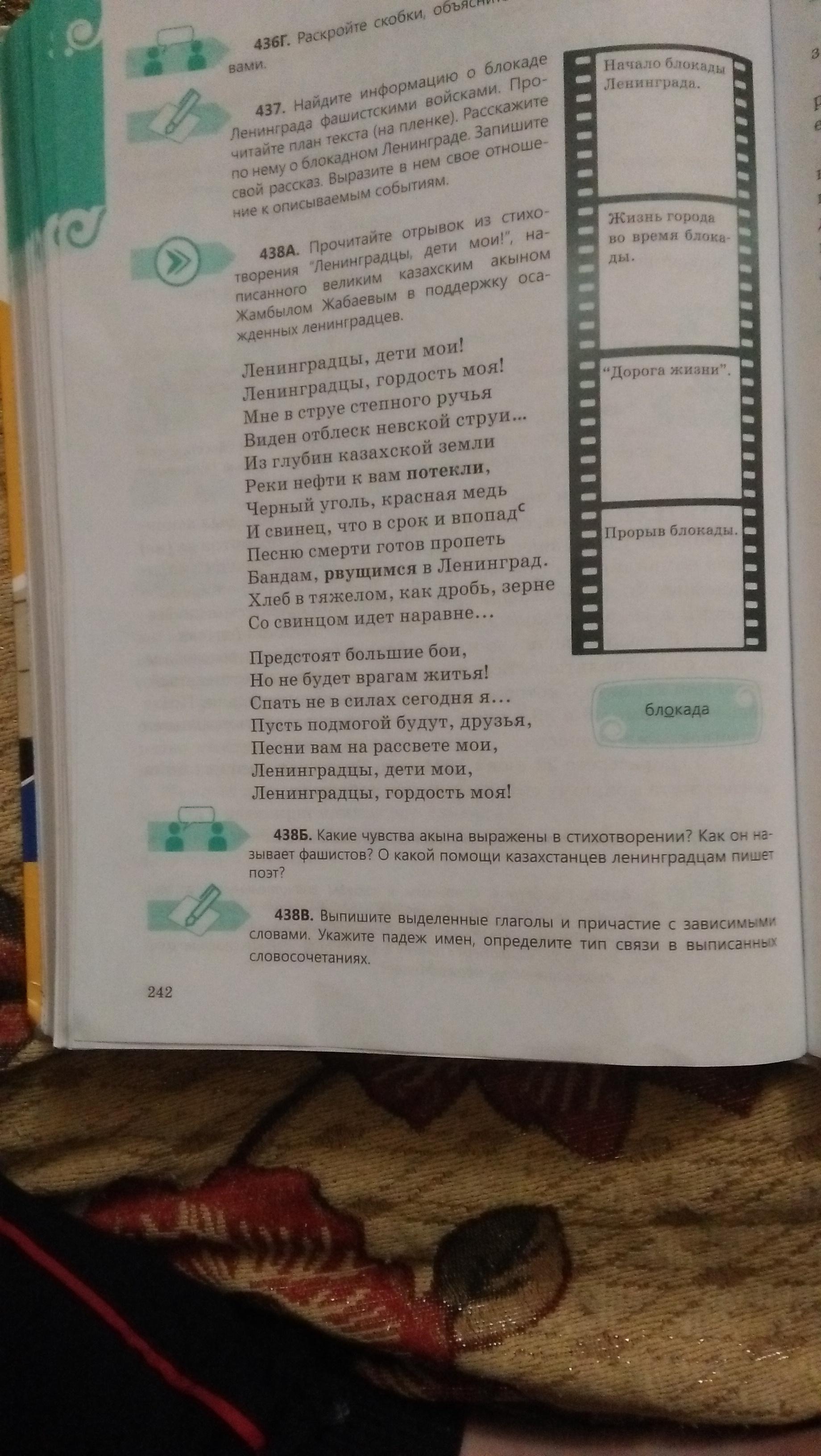 б) В стихотворении акына выражено чувство гордости. Акын называет немцев бандами. Поэт о том, что казахстанцы оказывали ленинградцам материальную поддержку в виде нефти, красной меди и угля.