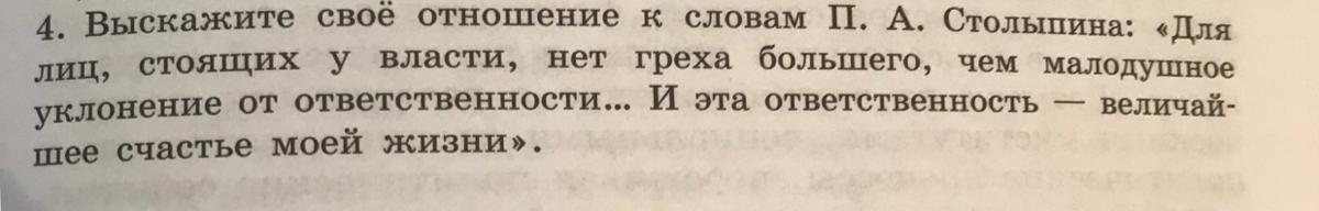 П.А.Столыпин говорил: ".......". По моему мнению, я считаю, что этими словами он хотел донести людям важность народа и отношения к нему. Он говорит о действительной важности этого, приведя в пример власть. При власти, действительно, человек мало заботиться и несёт ответственность за кого либо, потому что те кто стоит ближе к власти чаще всего задумываются о своём положении и редко задумываются о народе и долге перед ним и окружении. А если все же и задумываются, то не так серьёзно и намерено чем это нужно.