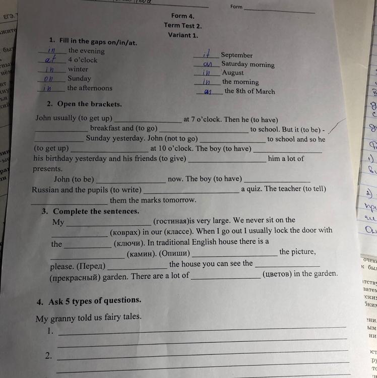 4) Did my granny tell us fairy tales? (Общий вопрос)