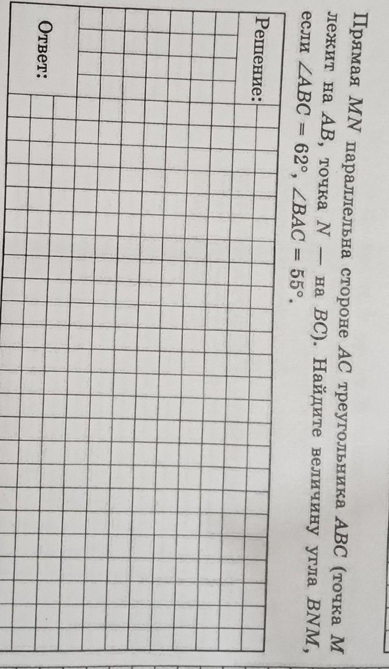 Так как они параллельные углы в треугольнике не изменяться следовательно 180-62-55=180-117=63