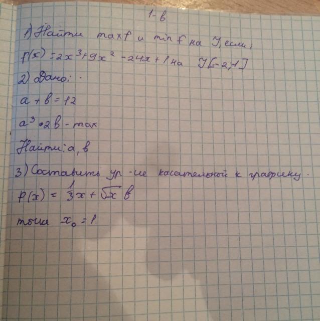 1) f(x)=2x³+9x²-24x+1 [-2;-1]
