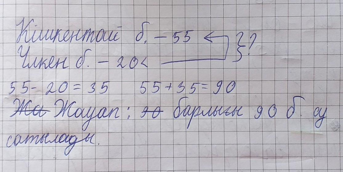 Дүкенде 55кішкентай бөтелкедегі және одан 20сы кем үлкен бөтелкедегі су сатылады Барлығы неше бөтелке су сатылды
