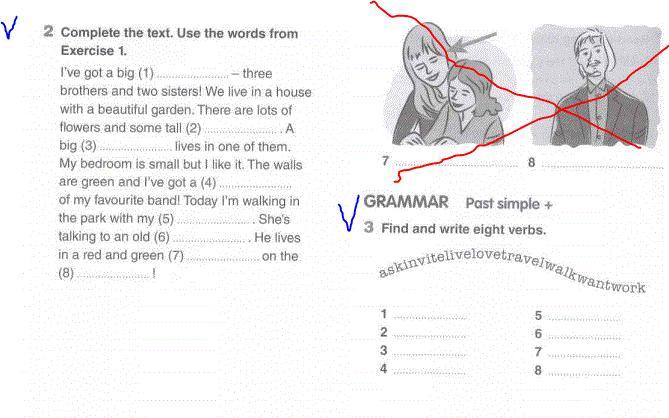 3) 1-ask 2-invite 3-live 4-love 5-travel 6-walk 7-want 8-work