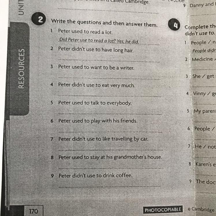 9. Did Peter use to drink coffee? No, he didn't.