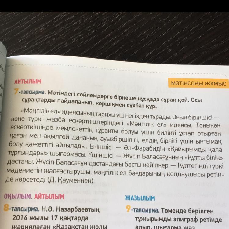 Надо составить 3 вопроса к каждому предложению к тексту закреплённому ниже (7 тапсырма)