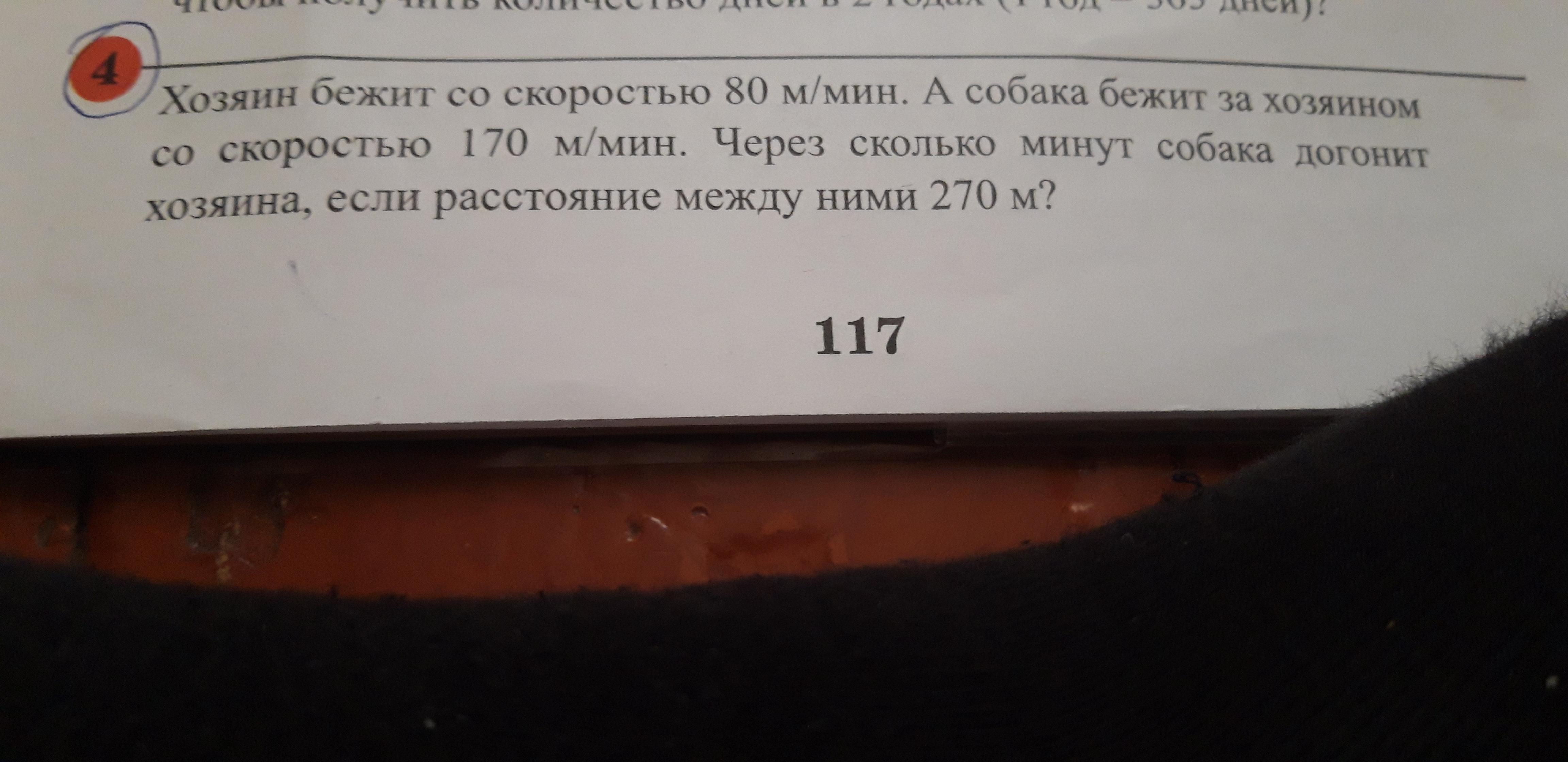 Через столько минут собака догонит хозяина, если расстояние между ними 270 метров