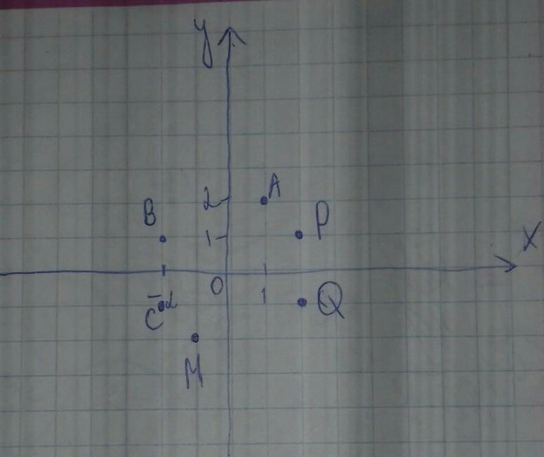 постройте точки , симметричные точкам А(1;2),В(-2;1),С(-2;-1) относительно начала координат и запишите их координаты