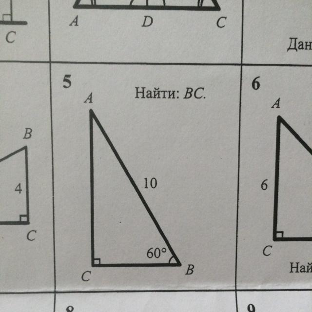 Даны углы равные 90 и 60 градусов, значит последний угол равен 30. Против угла 30 градусов лежит катет равный половине гипотенузы. СВ=5