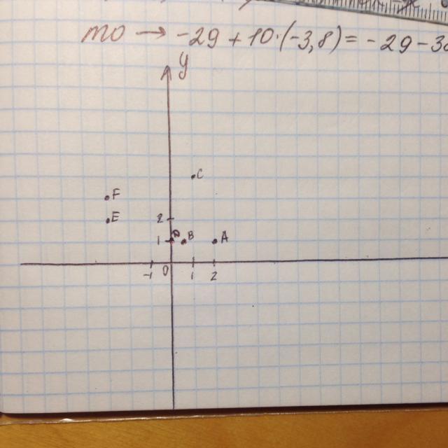 Постройте в декартовой системе координат точки: А(2;1), В (1/2;1), С(1;4), D(0;1), Е(-3;2), F(-3;3)