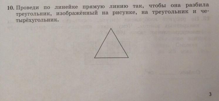 Пошаговое объяснение:Проведи прямую линию через середины 2 любых сторон и получишь треугольник и четырёхугольник