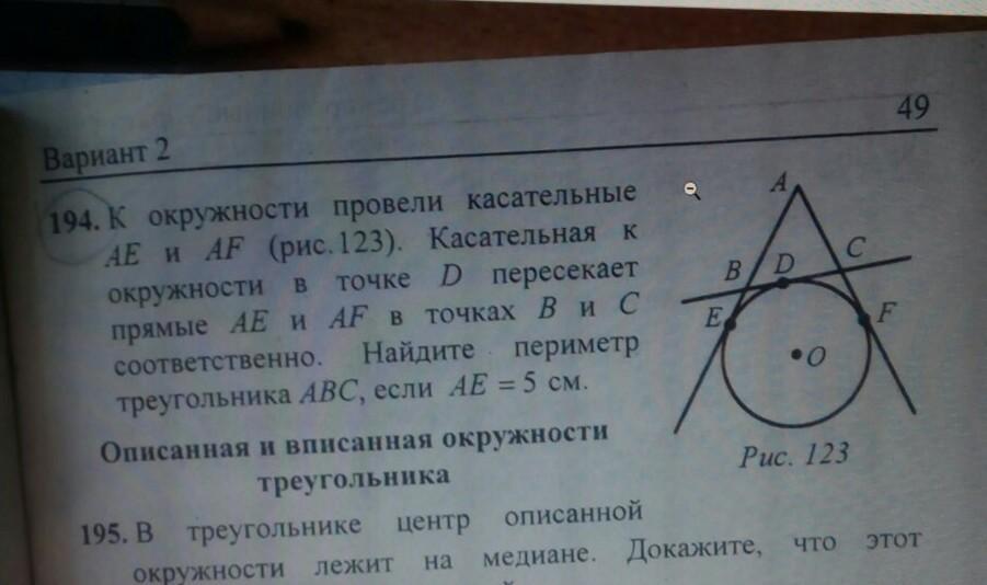 1) AE=AF=5 (касательные проведенные из одной точки)