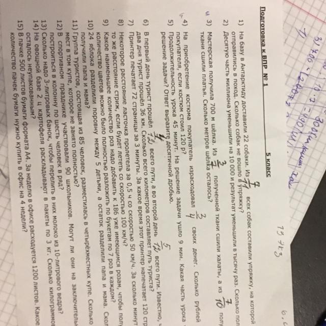 3) 3/7*700=300м(пошло на халаты), дальше не все видно