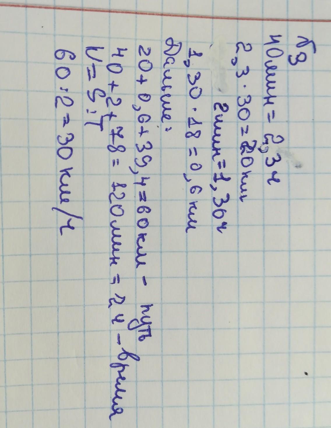 5) 60 : 2 = 30 км/ч - средняя скорость