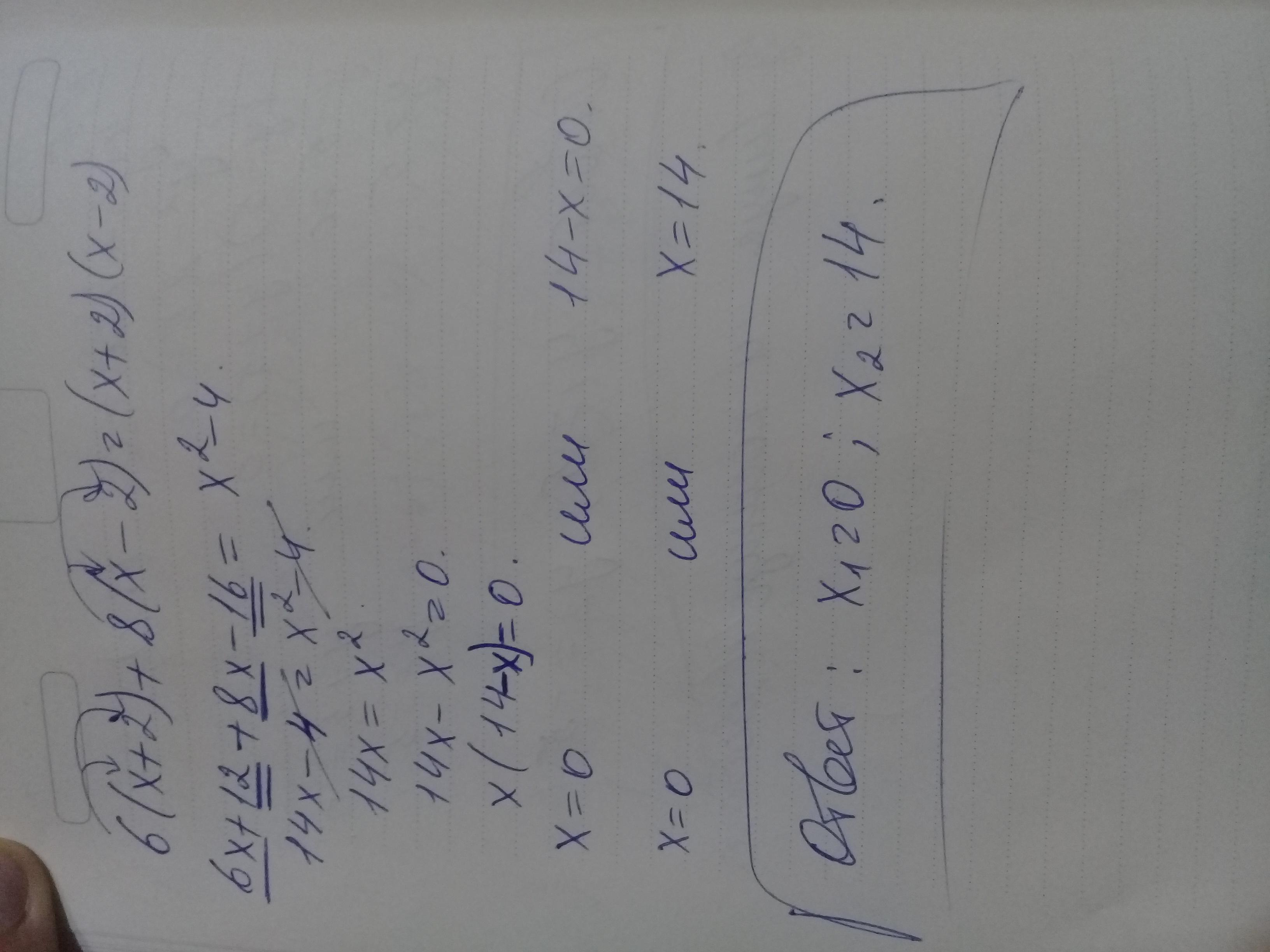 Это оно так! Но выглядит изначально оно так 6/(x-2) + 8/(x-2)=1. А потом скоротится к 6(х+2)+8(х-2)=(x+2)(x-2)! ПОЧЕМУ??