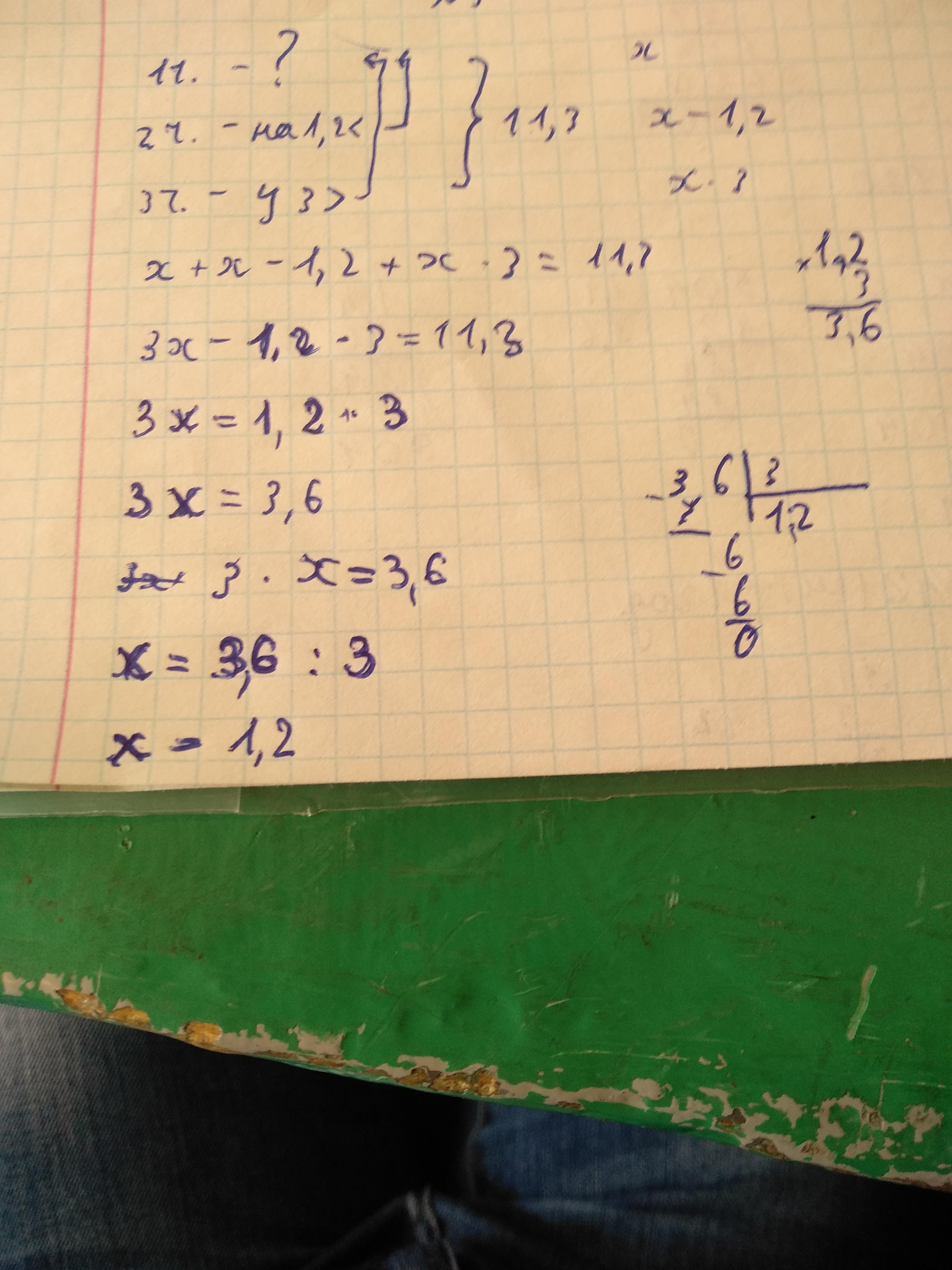 ошибка в 5 строчке: 5х=11.3+1.2, 5х=12.5, х=2.5