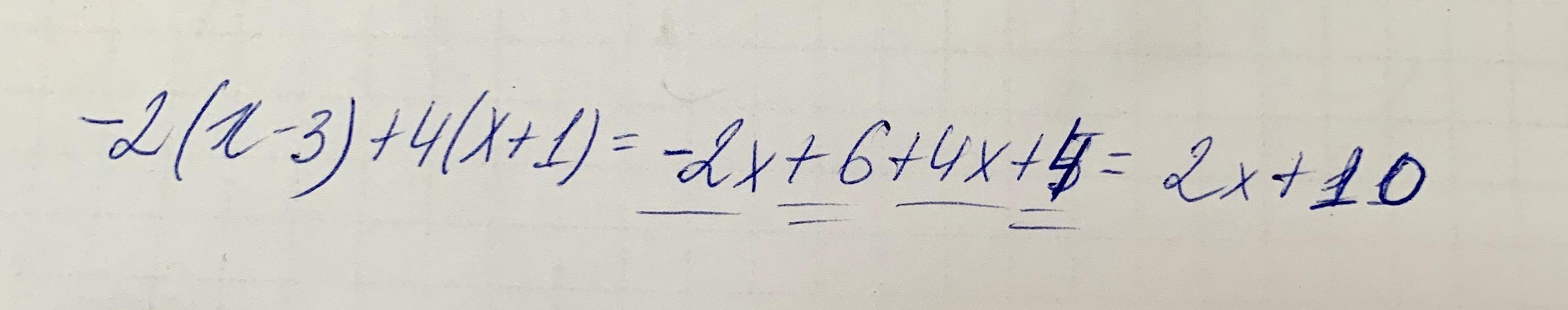 -2 (x - 3) + 4(x + 1)= -2x + 6 + 4x + 4 = 2x - 10