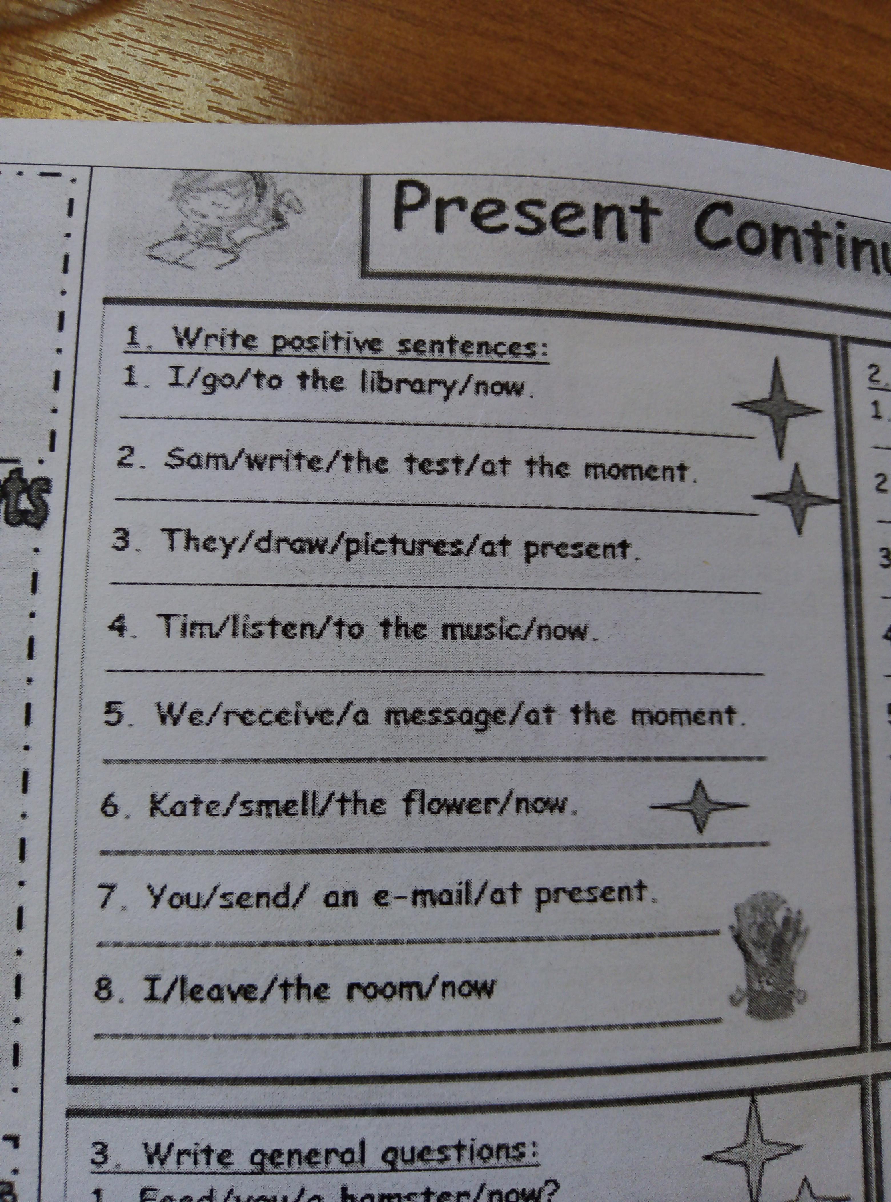 2. Sam is writing the test at the moment.