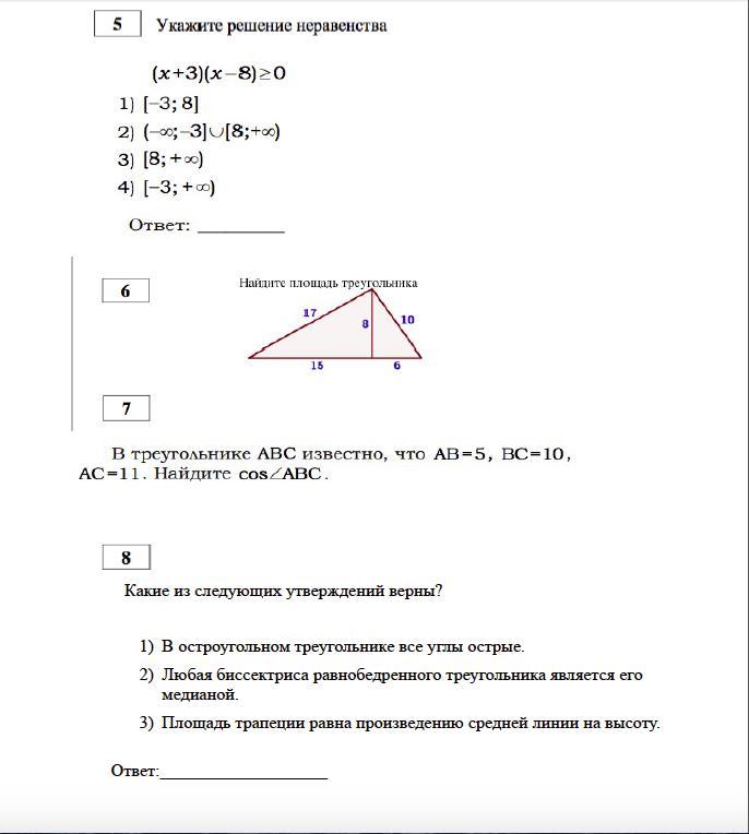 5. Это парабола, ветви вверх, значит между -3 и 8 будет < 0, а вне этого интервала > 0.
