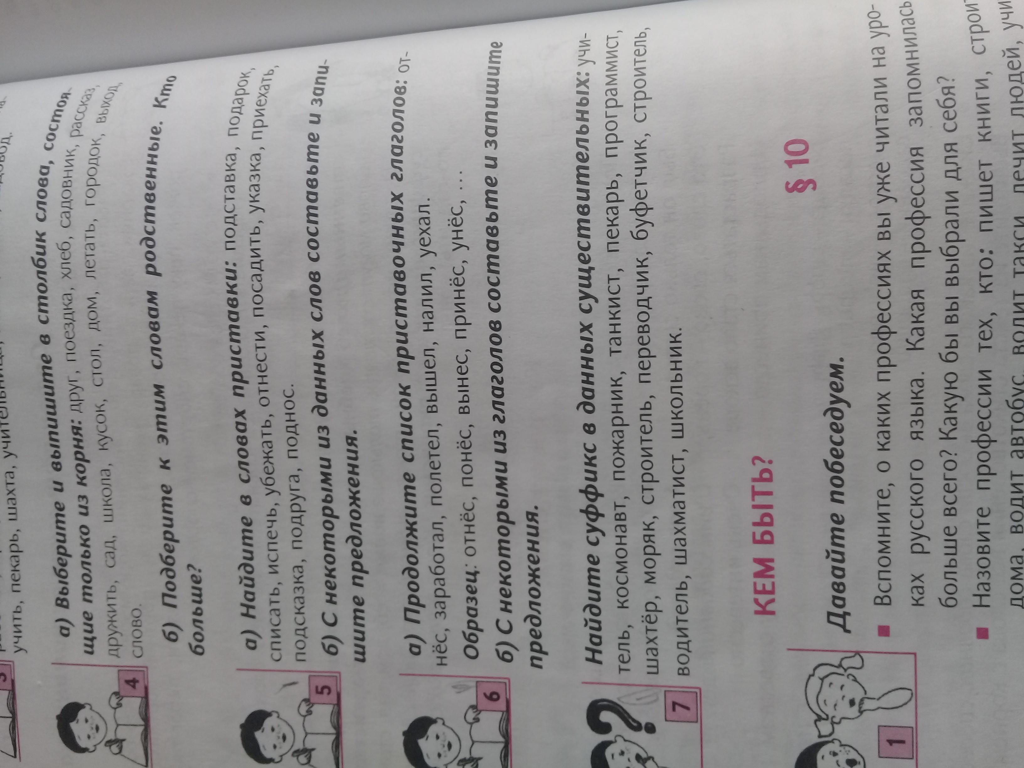 6а)заработал, поработал, выработал, сработал ; полетел, вылетел, слетел, улетел, налетел, прилетел, подлетел ; вышел, вошёл, пришёл, подошёл, дошёл, ушёл, вошёл ; налил, слил, вылил, отлил, подлил, полил, залил ; уехал, въехал, заехал, подъехал, съехал, приехал