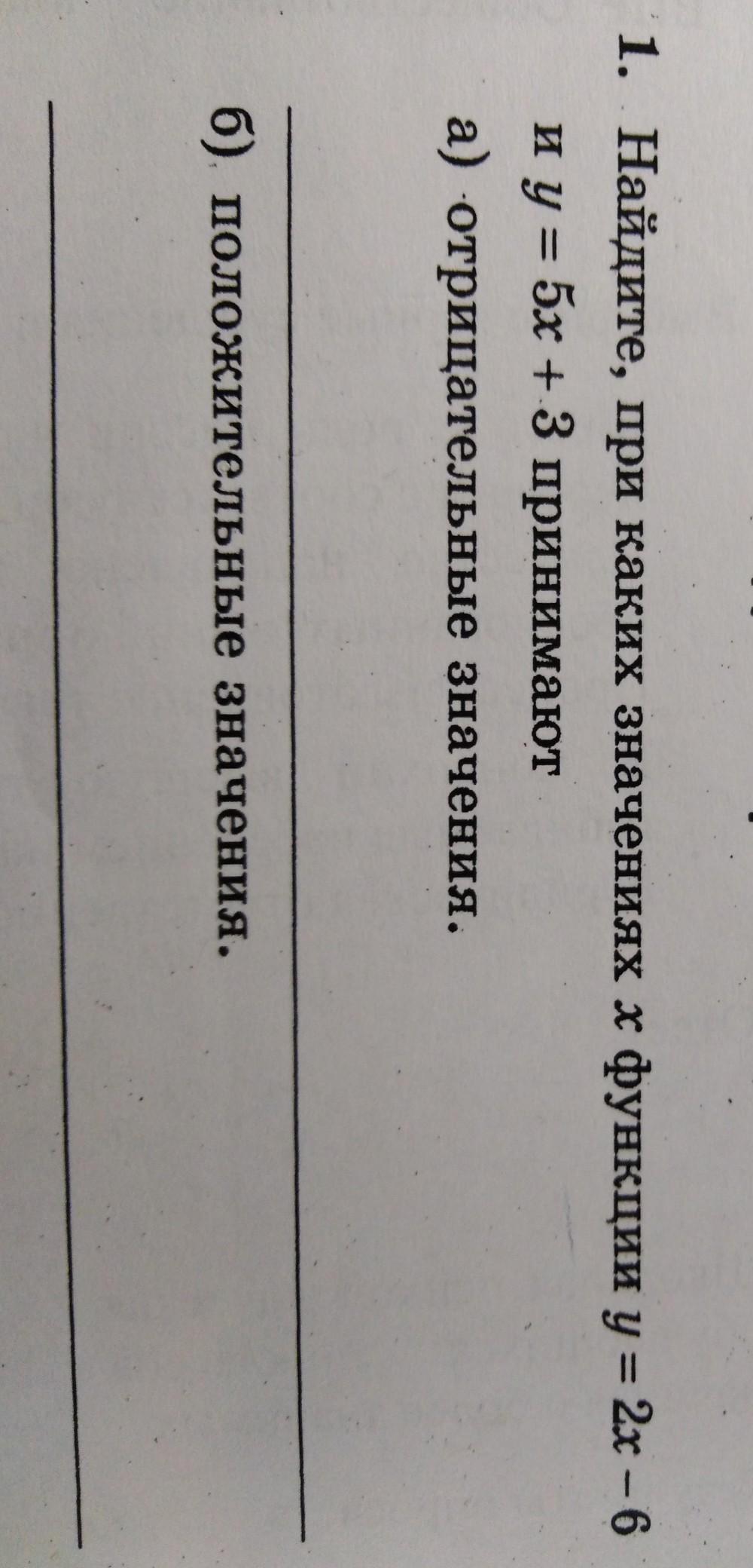 Найдите, при каких значениях х функции у=2х-6 и у=5х+3 принимают отрицательные и положительные значения