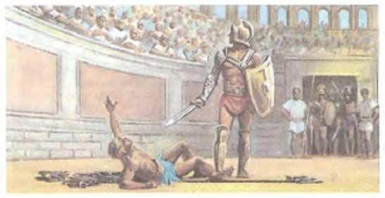На эллюстрации изображено гладиаторское сражение в Колизее