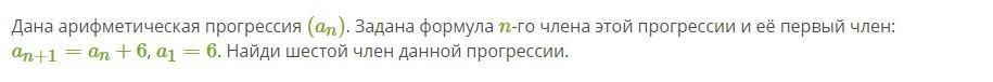 так ведь,а чего сложного...a(n)=a(1)*(n-1) + a(1) теперь подставим значения...6*5 + 6 или 6*6 = 36