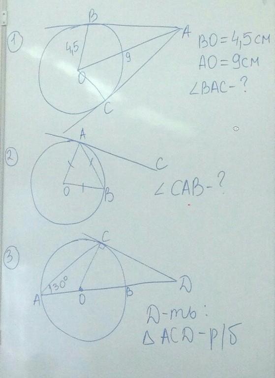 1 - ΔАОВ прямоугольный, т.к. АВ касательная, а ОВ - радиус окр